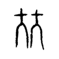 ,楷書則沿之以定體,也就不易瞭解其原形了。以上諸形,都由二個人字構成,又和人字沒聲音關係,所以在六書中屬於同文會意。《說文》古文以兩個