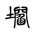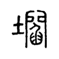 此字始見於戰國文字。戰國文字作,由「門」、「臽」二字構成。從門,示為里巷之門。從臽,聲符,注明音讀。或從土作壛。篆文承自戰國文字。隸書、楷書承自篆文而定體。在六書中屬於形聲。
