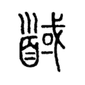 附注《說文新證》:「甲骨文『馘』字,為軍戰斷敵人之首,金文加聲符『或』作『馘』,《說文》或體承此;其後篆形从耳,或因軍制改取敵人之耳。」